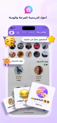 غرف الدردشة الصوتية العامة و الخاصة دردشة صوتية عالية الجودة مع اصدقائك و هي تعتبر آداة تواصل سهلة جدا! كما يمكنك انشاء غرفة دردشة خاصة مع كلمة سر لتتمكن من الاستمتاع بلحظات خاصة و هادئة.