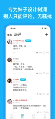 专为妹子设计的树洞:你可以在这里随便说什么心事,不用担心被打扰,因为他们只能评论你的树洞无法发起聊天,而你可以选择有趣的人进行回复。