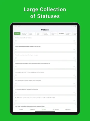- Statuses: we have a lot of statuses that will allow you to share your mood with your friends and colleagues quickly. Love-related statuses, inspiring statuses, funny statuses – you name it! It’s all a small part of our huge status library.