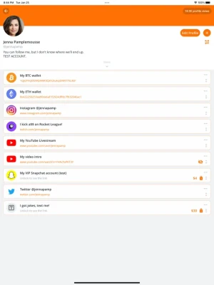 Link your Instagram, Twitter, Snapchat, Youtube or any other website!Create your AllMyLinks profile in seconds, 100% free!You are in complete control, there are NEVER any ads on your profile!Scan a QR code to add a link right from the app!Offline mode for times when there's no connection.