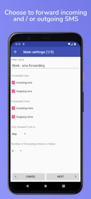 If the filter matches with the received/sent SMS / MMS, the application will synchronize the SMS / MMS with the second device.