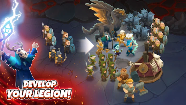 Massive 100v100 Unit Battles - Build an army and watch your troops fight idle-style. Plenty of units and skins ensure endless fun at the top of mobile gaming experiences. Battle Legion places you at the top tier of aspiring commanders, and as you rank up through unforgettable victories, so do your legion and its troops.