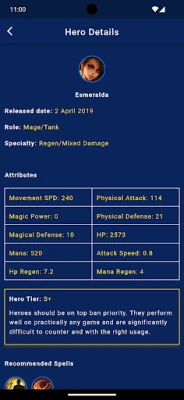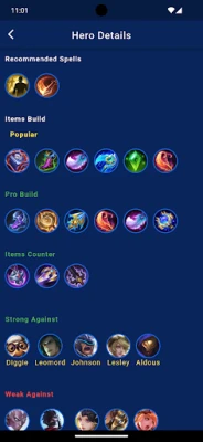 App gives the build and guide for all heroes, and include information details, cons, pros for all heroes. App also gives how to play in early game and late game with skills details.
