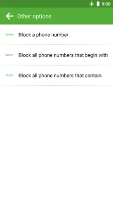 * Block all phone numbers using an area code.