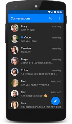 Chomp comes with a bunch of great features, notably a passcode lock, privacy options, scheduled SMS sender (reminders, birthday wishes), stop a text while sending, pin favs to top, backup, blocklisting / SMS blocker, signatures, text snippets, quick reply popup (even on lock screen), multi-select picture gallery, dual sim, better MMS and GROUP messaging and much more....