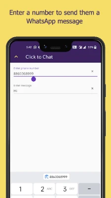 2. This app uses WhatsApp 'Click to Chat' feature (https://faq.whatsapp.com/en/android/26000030/) to open a chat with any number.