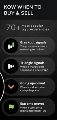 Live prices, candlestick charts, today's gainers, losers and latest signals are at your fingertips. You will find top 70 coins/tokens at Coin Push Crypto Signals. Pick your favorite symbols or follow'em all. Even 1 second candles are available at the app!