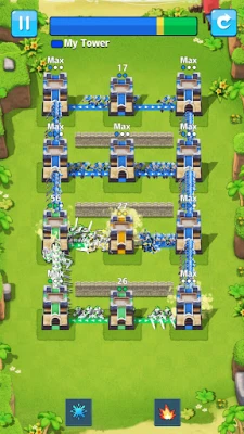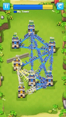 Swipe your finger to connect towers. What you need to do is to lead the blue soldier to guard your own tower while occupying towers of other colors, after which you will be the winner of the world empire.