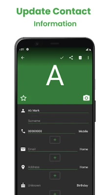 - Easily change contacts name, email, phone number, address, organization and many other customizable fields.
