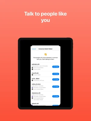 Converse is: - end-to-end encrypted: only you can access your messages - owned by you: you can leave with your messages if you want - interoperable: start a conversation on Lens and continue on Converse - open: connect any account that you own to the app - fast: messaging as it should be - fun: send photos and reactions - safe: get context about people who reach out to you - social: get recommendations based on your activity