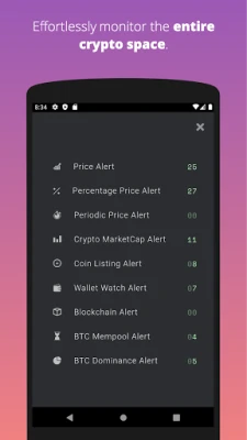 * Price Alerts - Realtime, customizable price alerts for over 20,000 different cryptocurrencies across 30+ top crypto exchanges, including Coinbase Pro, Binance, Uniswap, PancakeSwap, BitMEX, Bittrex, Bitstamp, Bithumb, Kraken, Bitfinex and dozens more. We also offer price & volatility alerts for over 10,000 Stocks & ETFs.