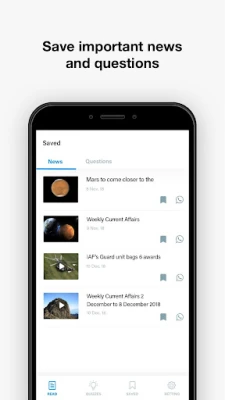 No more worrying about heavy data usage!! All loaded notes and questions are available offline for you to use anywhere, anytime - even without internet connection. Found an important piece of news? Bookmark it for revision later with this current affairs app!