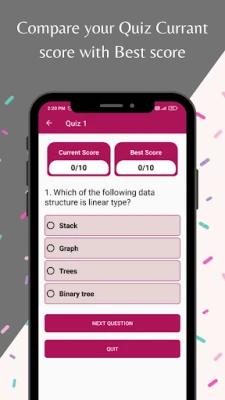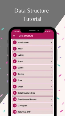 Included Theory with Example. It is absolutely free. Contain all basic concepts of Data Structure, MCQ and Question Answer. Included all basics theory of Data Structure. Contain implementation of different Data structure using C User Friendly Graphics UI. Easy to learn Data Structure.
