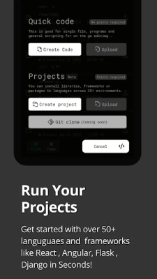 Dcoder is a mobile coding IDE and platform (Compiler for mobile), where you can run your projects, code and learn algorithms by programming on mobile. Build and deploy your projects straight from the mobile and integrate with Git (Gtihub, bitbucker) and sync with vs code, use of code compilations to make coding easy. Now code anytime, anywhere and on the go.