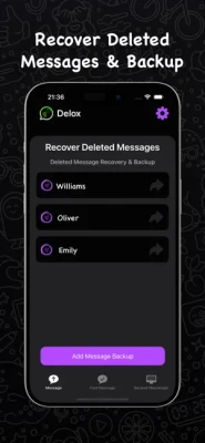 Retrieve your deleted messages backed up with Delox whenever you want! You'll never lose important conversations again.