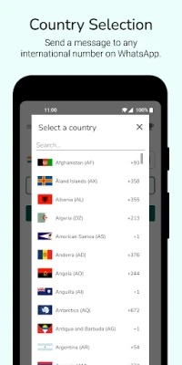 1. Select your preferred country code. 2. Enter the phone number you want to send a message to. 3. Write an optional message. 4. Tap on the Send message to WhatsApp button.