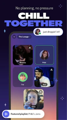 • Voice channels make hanging out easy. Got a free moment? Grab a seat in a voice channel so friends can see you’re around and pop in to talk without having to call. You can even watch videos together!