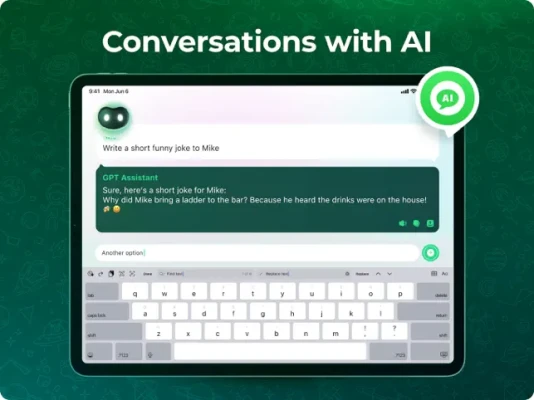 Benefit from an integrated AI Chatbot designed to offer instant responses, efficient message composition, and seamless task handling - all within the same app. Whether you need quick answers, assistance with various tasks, or engaging conversations, our AI Chatbot is available 24/7, ensuring continuous support.