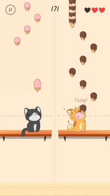 Tap the screen to hit the notes (ice-cream, candy, donut, sushi) and the cute cats will sing along to the music.