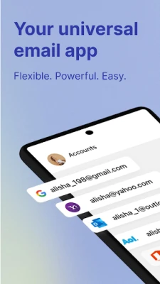 The email app allows you to connect an unlimited number of email accounts and offers a unified inbox that keeps all of your inboxes in one view. We support all the major providers — Outlook, Yahoo, Hotmail, iCloud, Office/ Outlook 365, Exchange, AOL, Gmail, and IMAP* mail accounts on your Android device.