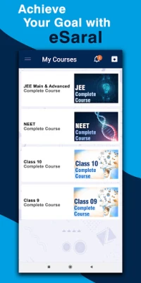 eSaral app is the most comprehensive learner and exam preparation app for engineering and medical students to help you prepare for JEE Mains and NEET Exams. You can even prepare for CBSE Class 9-10 using this app.