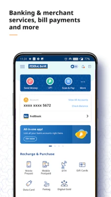 This revamped version of FedMobile– Federal Bank’s highly popular mobile banking application - comes with more user-friendly and advanced features than its predecessor, ensuring a richer and more pleasant experience for its users. We have combined Mobile Banking, FedBook and BHIM UPI into a single application plus a whole host of new features and services to make it a one stop shop for all your banking needs.