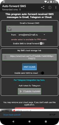 * This app is uploading users SMS Log information to http://sms2mail.net (https://sms.dimonvideo.net for version below 5.09) - this is needed to send SMS to your given email or Telegram account;
