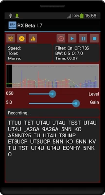 The app is designed to decode into plain text incoming audio morse, either via the devices built in microphone, or via an interfaced connection (similar to that used for digi-modes).
