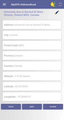 MyGPS Address Book is an Advance Contact App that lets you manage your contacts based on their locations. This App helps you find your approximate (if not exact) location and let you save it in your Favorites section. You can also add additional information to your saved address.