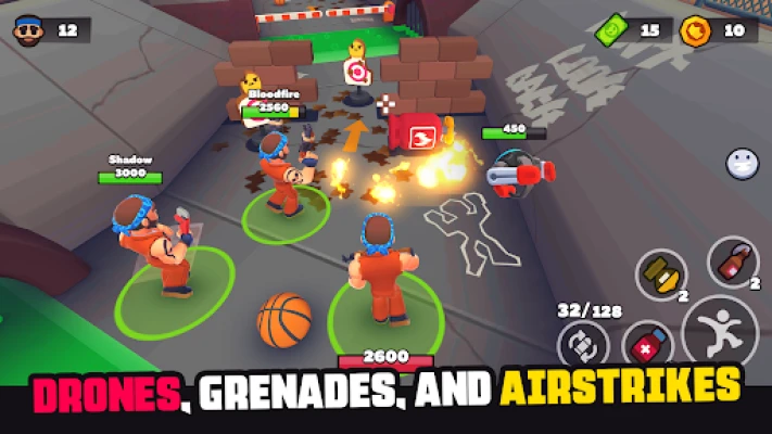 Choose your style with grenades, drones and even airstrikes! Choose characters and unlock new guns to become the strongest on the battlefield! Upgrade your equipment and build up your power!