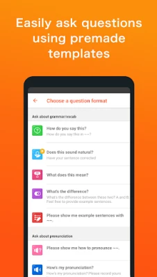 Question Formats - Asking questions made simple. All you need to know are the words, phrases, or sentences that you need help with, and HiNative question formats will do the rest. We automatically translate your questions into other users’ native languages. Learn how to speak a language without knowing how to speak it in the first place!