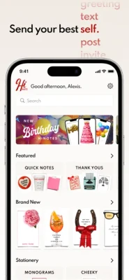 HiNOTE is modern messaging for every occasion and vibe. Send your best — text, greeting, invitation with RSVP tracking, social media post, email, meme, thank you, birthday card — with individuality, high-touch humor and style. Thousands of exclusive greetings, cards, monogrammed digital stationery and photo sharing tools with prepopulated, tasteful designs - personalized with your name or initials. Customize any of the 2000+ notes in just a few taps. Easily add a text box then send via text, social media, email, What’s App, Slack or your favorite communication platform.
