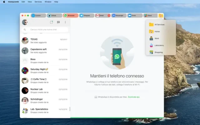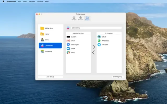 Honeycomb supports several kind of services: messaging, mail, cloud and many more. You can group them together and decide to open them all or group them to have just what you need for your current work.