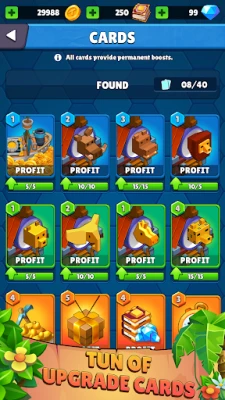 Collect all kinds of upgrade cards to become an idle gold mining tycoon