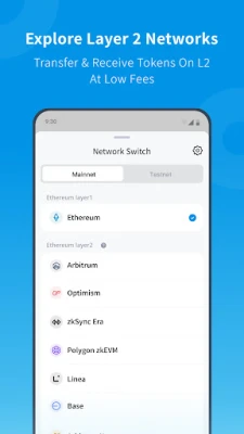 ● Access 10+ Layer 2 networks like Optimism, Arbitrum, Scroll, zkSync, and Starkware to enjoy faster and cheaper transactions.