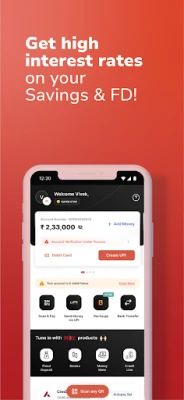 High interest rates: Grow your savings over time with the best interest rates out there. Earn an interest rate of up to 6.75% p.a. on your savings account (सेविंग्स अकाउंट) and 7.5% p.a. on your fixed deposits.