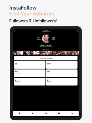 InstaFollow is the analytics app to find out profile interactions, blockers, followers, unfollowers, story viewers, secret admirers and many more!