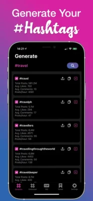 Generate many hashtags for your posts from a single word which will serve as a main subject. For some results you will see a short analysis of its popularity*.