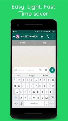 Start a conversation on WhatsApp without adding the user phone to your phone contacts. No More Ghost Contacts!