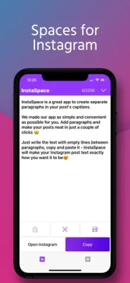 Just write the text with empty lines breaks between paragraphs, copy and paste it – InstaSpace will make your Instagram post caption exactly how you want it to be.