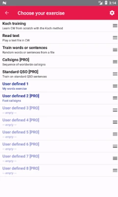 - supports Koch method with G4FON, LCWO or custom character sets