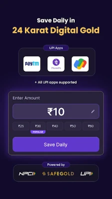Digital Gold Savings: You can Save Money automatically in Digital Gold on a Daily, Weekly and Monthly basis. With the Round Off feature, you can Save your Spare Changes every time you purchase something.