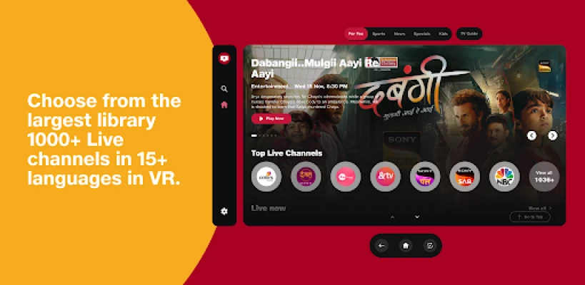 Step into the future of live television with JioTV XR! Immerse yourself in an unparalleled VR entertainment experience that brings you access to over 1000 live TV channels in 15 languages. Whether you're a sports enthusiast, a movie buff, or a fan of the latest shows, JioTV XR caters to all your entertainment desires.