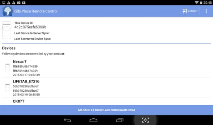 Kids Place Remote Parental Control & Monitoring (Alpha version) - Allows you to remotely manage Kids Place Parental Control App on one or more devices from a cloud-based console at https://kidsplace.kiddoware.com. In that way, this parental control app enables remote parental monitoring and kids tracker features!