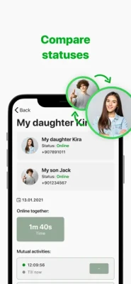 Trying to control the time you spend on social media and online messengers? Or maybe you are a caring parent that doesn't want their children to waste time? Then maybe you will find the Parental Online Status Control app very useful for your needs. This app can help you monitor all your and your kids activities. Get instant online notifications with the best assistant for monitoring online last seen.