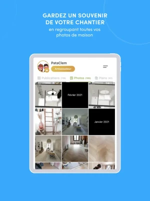 Grâce à Kozikaza, publiez les photos de votre chantier maison et écrivez l’histoire de votre maison ! Conservez tout l’historique de votre chantier et partagez vos avancées avec la communauté et vos proches. Triez vos photos de chantier et organisez-les pour mieux les retrouver.