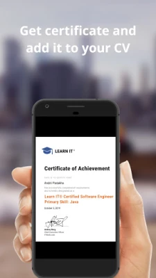 - you can become Certified Software Engineer and receive your own certificate in .pdf format which you will be able to attach to your social networks or to add in your CV.
