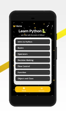 This app covers all the important parts of Python. It's created to improve the thinking of varied issues in regards to the basics of Python programming. It consists of relevant subjects and their syntax, source code.