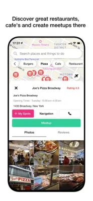 • Plan meetups with your new friends and your besties by tapping the Meetup button on the place pages.