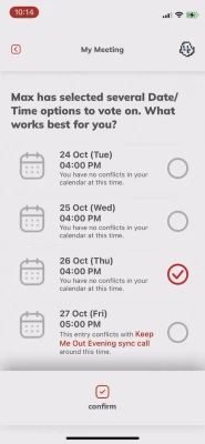 By creating meetings and joining, users can find new places by occasion categories and vote for their favourite among a selection.